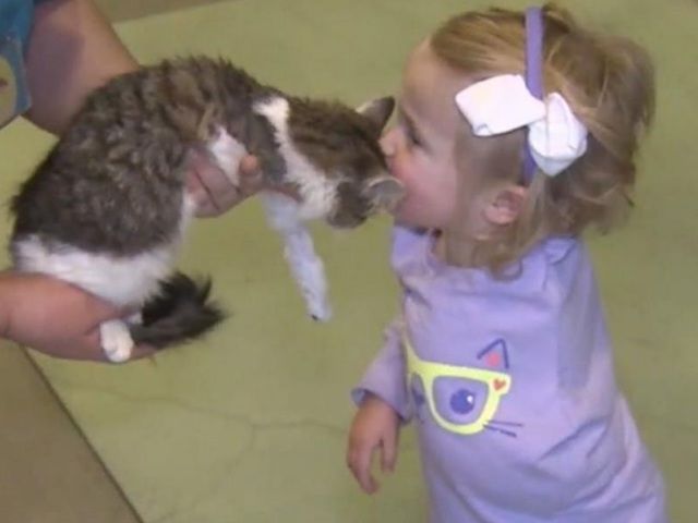 Pewna rodzina z Trabuco Canyon w Kalifornii adoptowała 3-miesięcznego kociaka, któremu niedawno amputowano łapkę. Adopcja z premedytacją – przez pół roku szukali kociaka trójłapka, który miał się stać przyjacielem dwuletniej Scarlette, ich córki. Dziewczynka sama jest też niepełnosprawna. Scarlette urodziła się z bardzo rzadką postacią raka, który zaatakował jej lewą rękę. Miała zaledwie 10 miesięcy, gdy podjęto trudną decyzję o amputacji chorej ręki, by ratować jej życie.