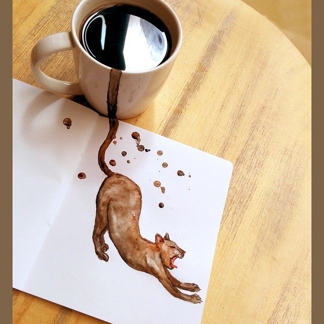 Zamiłowanie do mruczków i kawy skłoniło rosyjską ilustratorkę, Elenę Efremową, do eksperymentów. Zamiast malować koty farbami, posłużyła się kawowymi napojami. Efekty są zaskakujące!