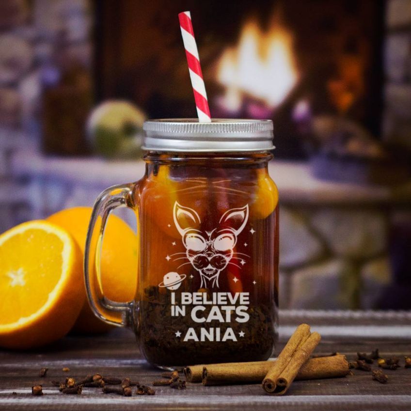 Niech mówią, co tylko chcą – ty i tak zawsze będziesz wierzyć w koty. Zadeklaruj to przed całym światem, sprawiając sobie specjalny prezent dla kociary – Believe in cats – grawerowany słoik z uchem. Przepiękny gadżet z kotem sprawi, że każda słodka lemoniada, orzeźwiające smoothie lub mrożona kawa, sporządzona według tamtego nowego przepisu, będzie smakować nieziemsko – szczególnie, jeśli wypijesz je z ukochanym kociskiem na kolanach. Grawerowane słoiki z uchem powoli przestają mieścić się na półkach w naszym sklepie – oferujemy zarówno pojedyncze egzemplarze, jak i niezwykłe podwójne propozycje dla par. Wszystkie sprawdzą się jako nieszablonowe prezenty dla kociary, sportowca, zakochanych – i nie tylko.