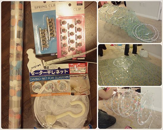 - metalowe, wiklinowe lub plastikowe obręcze (tu użyto obręczy ze składanych sieci)